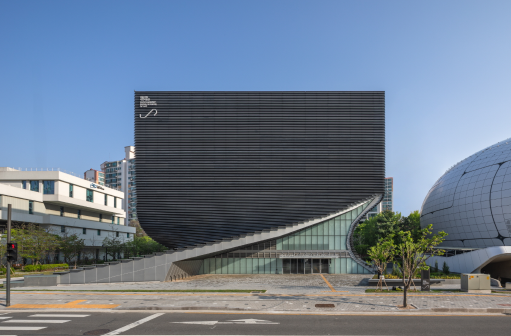 - 건축은 사진의 핵심인 '픽셀'과 '조리개'를 표현한 디자인입니다. 정육면체 형태를 회전시킨 외관과, 빛과 시간에 따라 변화하는 검정·회색의 외벽이 사진의 특성을 건축적으로 형상화했습니다.